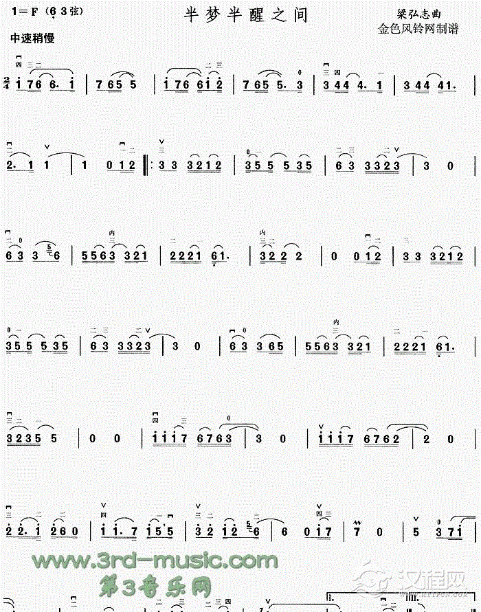 曲谱大全二胡曲谱:追梦人《雪山飞狐》插曲