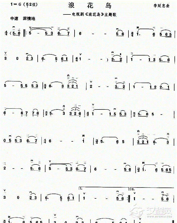 曲谱大全二胡曲谱:绿叶(电视艺术片选曲