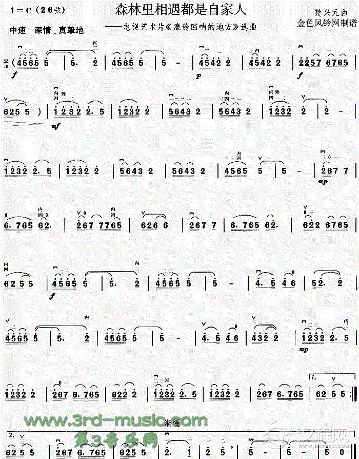 曲谱大全二胡曲谱:你从黄昏中走来《芳香的黑土地》插曲