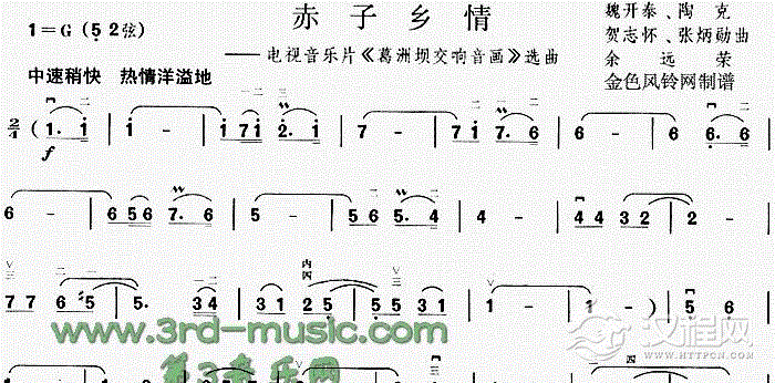 曲谱大全二胡曲谱:我热恋的故乡