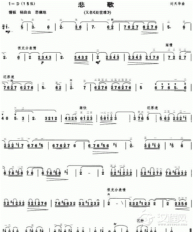 曲谱大全二胡曲谱:病中吟(又名:安适、胡适)