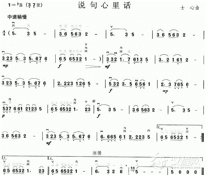 曲谱大全二胡曲谱:山不转水转(电视剧主题歌