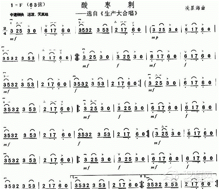 曲谱大全二胡曲谱:风情金鸡湖