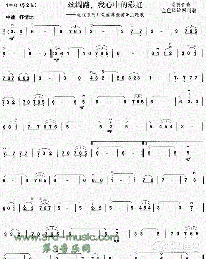 曲谱大全二胡曲谱:我的中国心