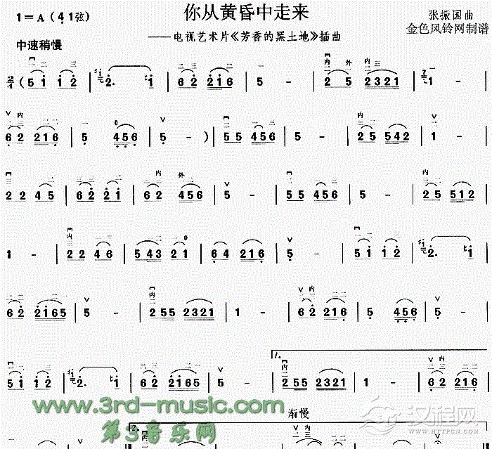 曲谱大全二胡曲谱:《杨乃武与小白菜》主题歌