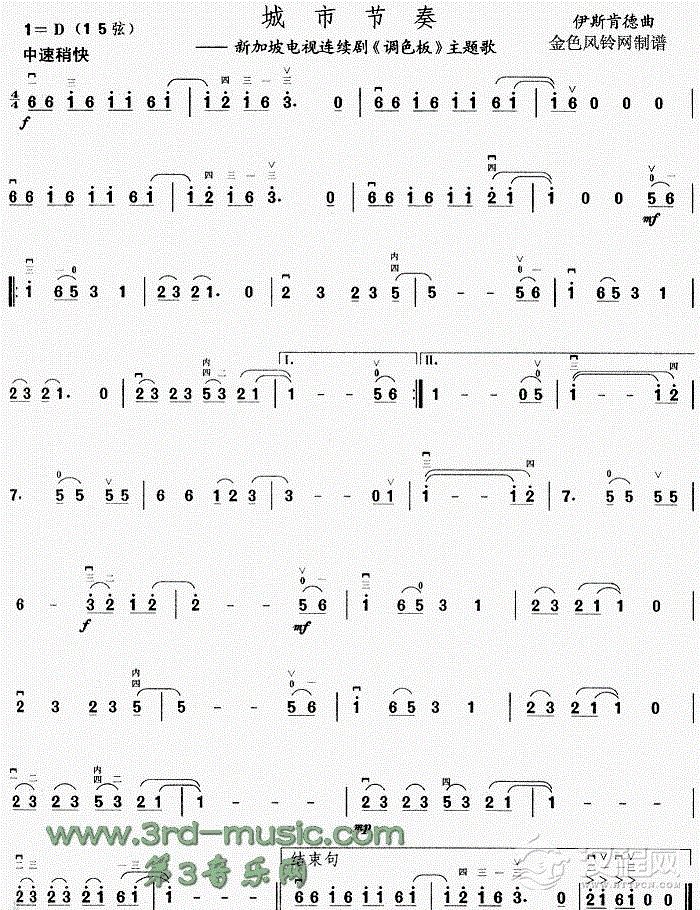 曲谱大全二胡曲谱:游子吟