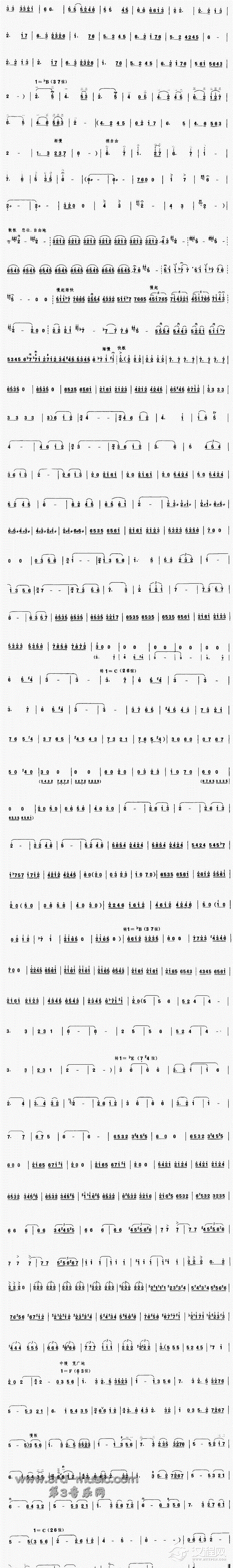 曲谱大全二胡曲谱:小河流过几道弯