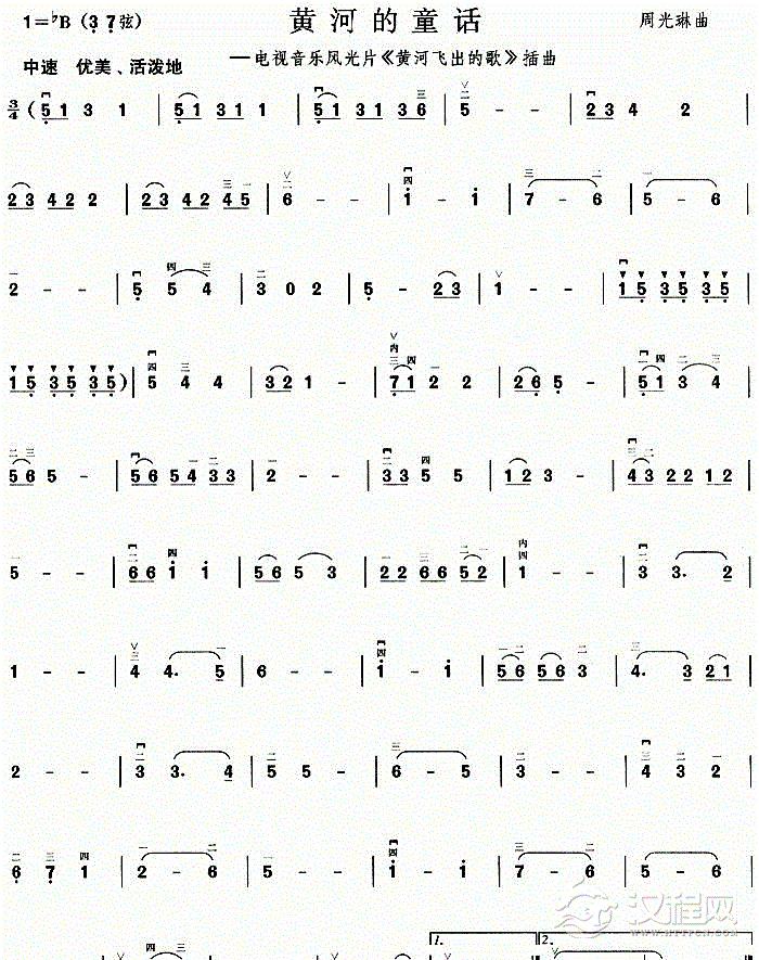 曲谱大全二胡曲谱:红旗渠水绕太行