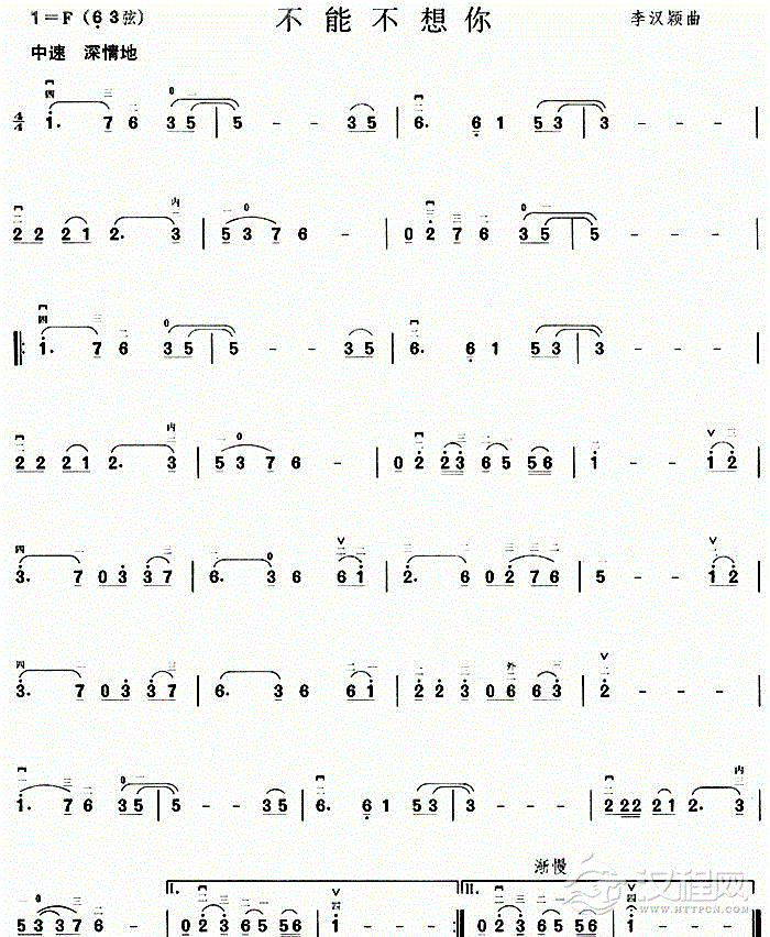 曲谱大全二胡曲谱:我不想说《外来妹》片头主题歌