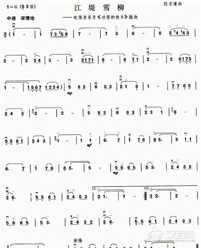 曲谱大全二胡曲谱:几度夕阳红(电视剧主题歌