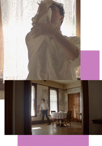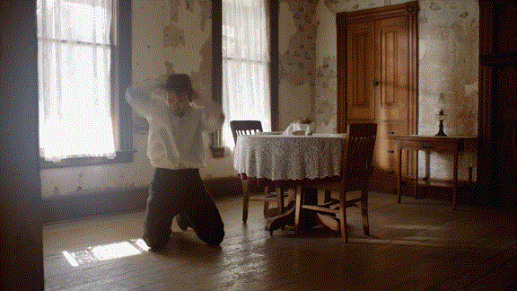为了更好地让舞蹈和音乐结合,他们将“表演”搬到巴赫的旧居。Carberry 换上宽松的白衫黑裤,将袖口卷起,在陋居里随性舞动。动作里少了嬉皮味更多是抽象的现代风格。