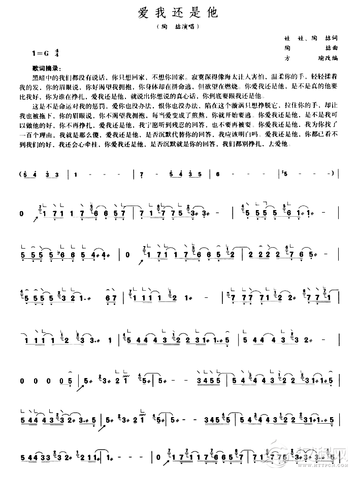 爱我还是他是由陶喆演唱的一首歌曲,相信学习古筝的朋友们都非常想知道哪里有关于这首歌的曲谱吧,下面小编就为大家非常一下古筝爱我还是他简谱,希望大家能够喜欢!