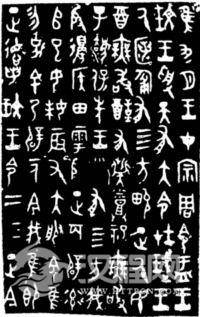 籀文又称大篆。据汉代许慎《说文解字》记述,是由周宣王(公元前823—前782年)时的太史籀整理创立的书体。近代学者王国维论证为春秋战国时代在秦国通行的文字。籀文结字如金文,笔画圆转更具书写的线条韵律。“秦公簋”铭文及石鼓文可为代表。