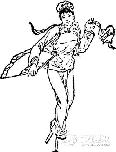 高跷是带有杂技性的舞蹈。双脚踩在钉有踏脚板的一双木棍上表演。《列子·说符》已记载了宋国兰子装“双枝”,“长倍其身”,疾走奔跑,表演剑舞的事。可见中国高跷历史悠久。清代高跷表演者多是扮成农夫农妇模样,踩着高跷唱秧歌,所谓“村公村母扮村村,展齿双移四柱均”。也有扮成头陀、丑公子等滑稽人物的,也有扮成故事人物的。