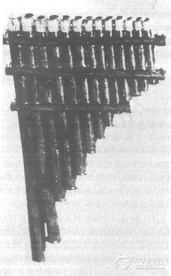 ”,象征若干吹管编排在一起演奏,它被认为是古排箫的一种。战国曾侯乙墓葬就出土有这种乐器(图11)。《吕氏春秋·仲夏纪·古乐篇》中记载有《大夏》的内容和产生过程:禹立王之后,勤劳治理天下,日夜努力不懈,他率众“通大川,决壅〔yōng庸〕塞,凿龙门,降通漻〔liáo辽〕水以异河,疏三江五湖”之水,让其通畅地流入大海,使农业生产的水利条件有了保证;同时又命乐官“皋陶”编制成乐舞“《夏籥》九成”,以宣扬歌颂其治理国家的功德。所谓“九成”,是说《大夏》表演的乐曲和歌曲分为九段。据《礼记·明堂位》记载,这一乐舞表演时舞蹈者头上戴着皮帽,体披白色素服,赤裸着上半身,可见它的乐曲和歌曲都具有古朴、粗犷的艺术风格。