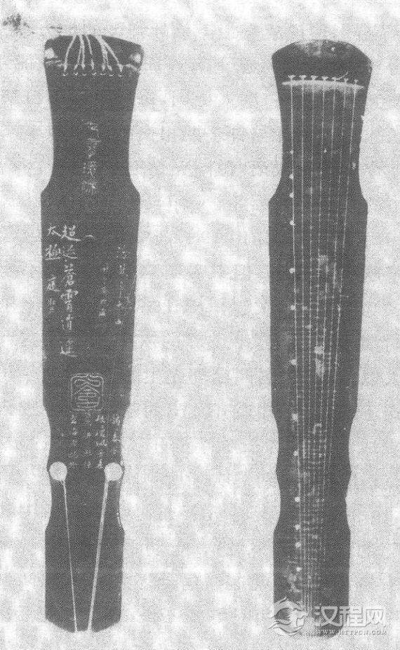 属于“丝”类的琴、瑟等弹弦乐器,此时期则在称为“士”的知识分子阶层和民众中得到广泛传播,并逐渐发展成为表现力很强的伴奏乐器和独奏乐器。琴,今称“古琴”或“七弦琴”(图12),传说由远古氏族领袖神农氏创制,用桐木为琴体,以绳丝为琴弦,长三尺六寸六分,最初为五弦,至周代定为七弦。春秋战国时期,士人中已涌现出一批琴家,琴技琴艺已发展到较高水准,孔子就曾以善弹古琴而为人称颂。另有一位名叫伯牙的古琴家,《吕氏春秋·本味篇》载有一段关于他的著名故事:伯牙是战国时代人,他弹奏的古琴曲意境深远、技法娴熟,所以自诩无人能欣赏其演奏的音乐,因而常常孤芳自赏,弹琴独乐。一日,伯牙来了雅兴,先弹了一曲《高山》,一位名叫钟子期的樵夫听后立即赞叹说:“多壮美啊!曲意巍峨如泰山!”伯牙大吃一惊,复又弹了一曲《流水》,曲调刚终,钟子期又立即赞叹说:“多壮美啊!乐情浩荡如江河!”伯牙惊喜万分,从此与钟子期结为生死之交,成为音乐上的难得“知音”。现在我们常说的“知音难觅”就出于这一典故;“高山流水”一词也因此而成为美好音乐的代称。今湖北武汉有一游览胜地叫“古琴台”,传说就是当年伯牙弹琴的地方。“古琴台”殿堂正门房檐下有一面书有“高山流水”四个大字的横匾,游人见到,每每会情不自禁地追忆起古代伯牙与钟子期相交的音乐故事来。