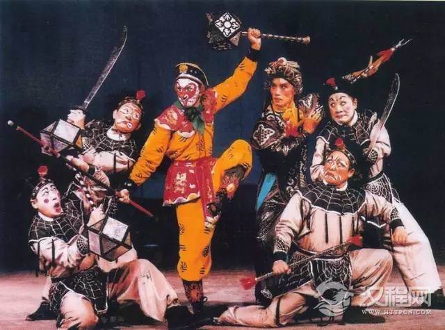 丑为笨的代名词,舞台上的武丑亦叫开口跳,而能说能跳,表演出活泼伶俐,善演武功武技的角色