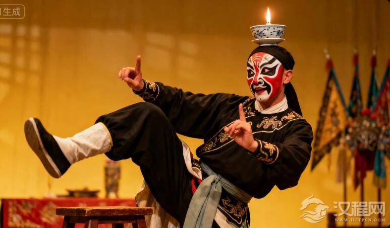 一盏点燃的烛火,稳稳立在叠起的瓷碗顶端。演员一个翻身,钻过条凳,火苗在气流中微微一颤,却不见丝毫倾洒。紧接着,滚席、倒立,甚至是从高处一跃而下…烛火始终在那方寸之间安然燃烧。