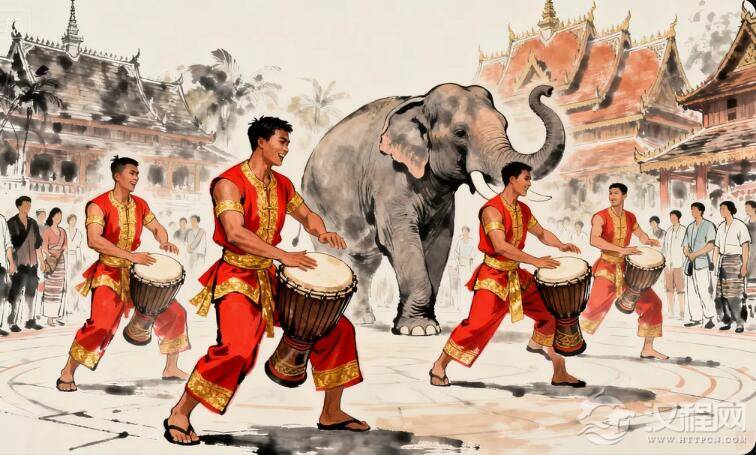 若你以为所有傣族舞蹈都是如此,那就错过了另一半的精彩。在德宏等地,舞蹈风格便大不相同。这里的节奏更快,动作也更加活泼有力。比如“象脚鼓舞”,男子们身挎长长的象脚鼓,鼓声铿锵,步伐豪迈,旋转、踢腿,充满了阳刚的爆发力。这哪里还是我们印象中单一的“柔美”?这分明是热情的生命力在尽情释放。就连女性的舞蹈,也常带着一种轻快的跳跃感,手中的道具或许是花环,或许是竹竿,舞动起来小巧而灵活,洋溢着节日的喜悦。