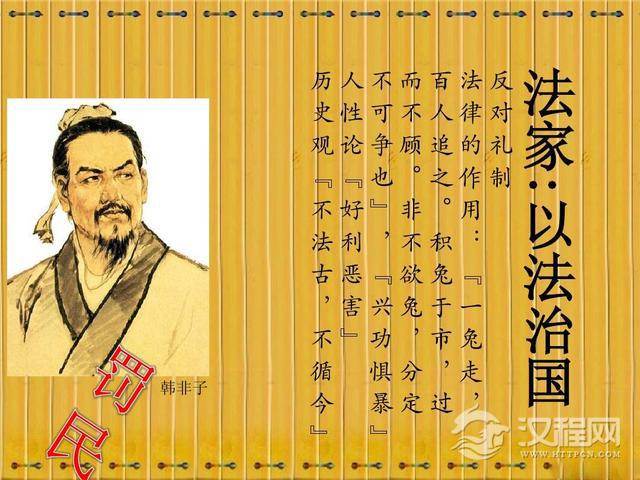 韩非结合商鞅的“法”,慎到之“势”,申不害之“术”,三者相承相辅的关系下结合,提倡礼辅之。延续继承荀子思想中的“性恶论”,但依然在其篇段中“存韩”,也是因为“存韩”之心惹来杀生之祸。