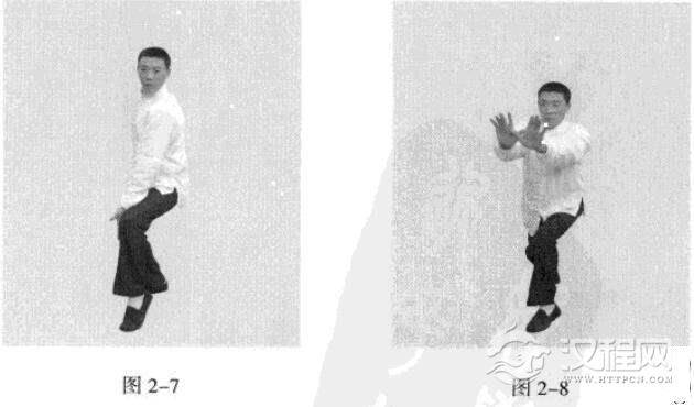 熟练掌握后可结合“起随追”的方法进行训练。上述为推单把的鸡腿训练。下面再将推双把的训练方法介绍如下。