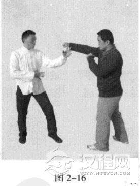2.敌左势以右拳或左拳击我。(图2-16)
