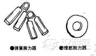 此种训练用具一般体育用品商店均有售.在本训练课程中,以弹簧握力练习器为最佳.因其便于抓握训练。如无,则可以30kg或以上握力限度(根据你本人握力情况选择)的橡筋握力器代替。