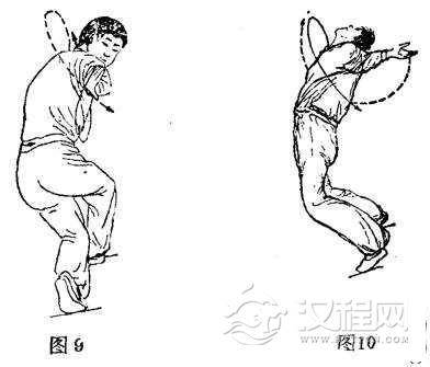 要点:松肩、活胯、挺胸、挺腹,抡臂快速有力。