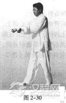 两臂向前弯曲伸出,手心向上,手腕放松,同时上下抖动活腕;抖动数下后.两手同时由松变紧握拳(天降石)向下斩落,拳之尖端尽力向下(图2一30)。反复活动,以30次为一组。