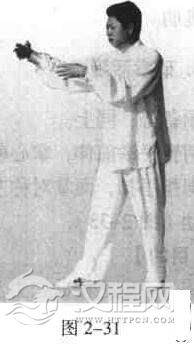 右手弯曲向前平伸.立掌;左手托在右肘下,右掌先顺时针右转环形活腕,然后再逆时针左转环形活腕(图2一35)。