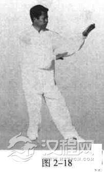 在五五步基础上,前腿后撤半脚余.重心后移,后腿七、前腿三,即是(图2一18)。