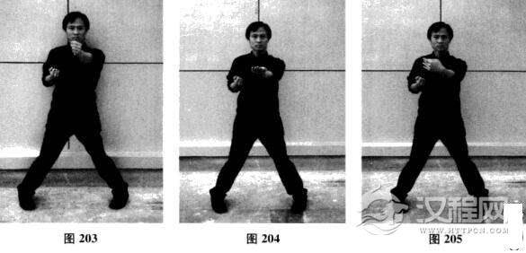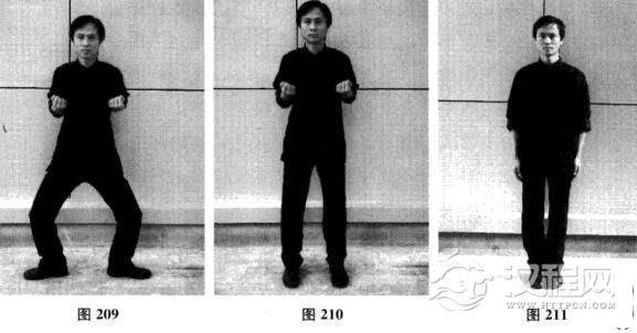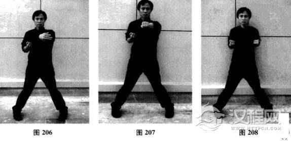 二十七、连环日字冲拳—摊手、圈手、收拳(图200-图208)
