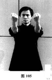 十七、抹手—弹手—收拳(图103-图106)
