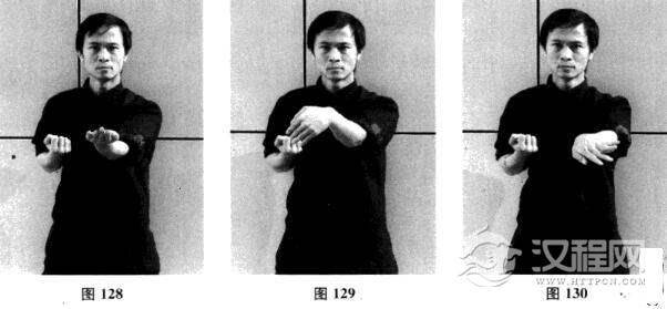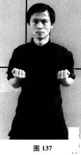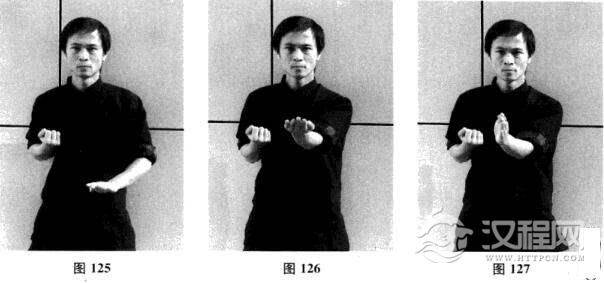二十、左摊手—左枕手—左摊手—左圈手斜掌—摊手、圈手收拳(图125-图137)