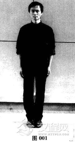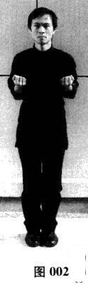 全身放松,双脚并拢站立,双臂自然下垂置于两腿侧,舌顶上颚,目视前方,呼吸自然。