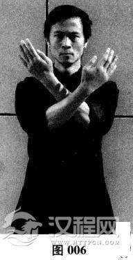 三、下交叉耕手—滚手—上交叉摊手—收拳(图005-图007)