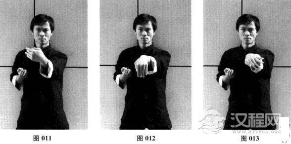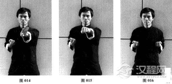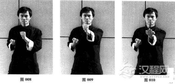 四、左日字冲拳—左摊手—左圈手—收拳(图008-图016)