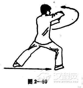 圈捶或崩捶时,不单手部动作纯熟灵活,而且其扭腰动作也必须掌握得相当熟练才行。