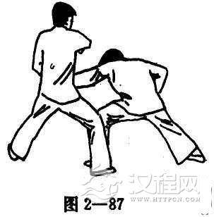(3)两脚位置不变,右拳倒钩,以拳背敲击前方(图2--85)。