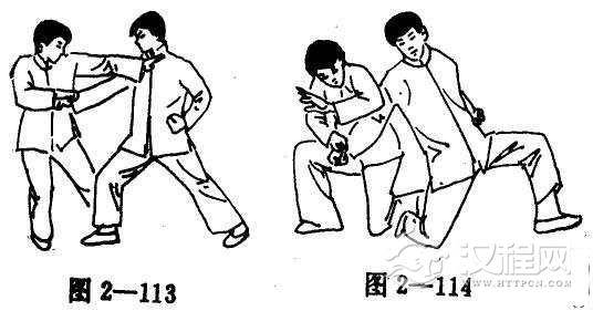 (1)当对手有意出击膝盖时(图2-113)。