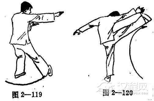 (1)右腿前移成揪腿(图2-119)。