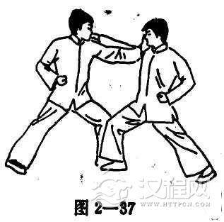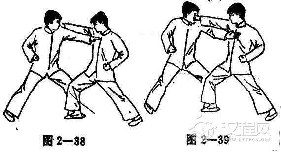 利用掌背来敲击对手的脸、胸、皋丸等部位(图2-39).