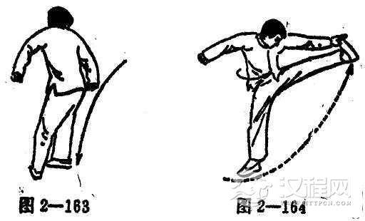 (3)旋及将右脚下落于左脚后侧(图2-163)。