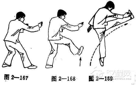 (2)先将右脚往左方上提(图2-168)。