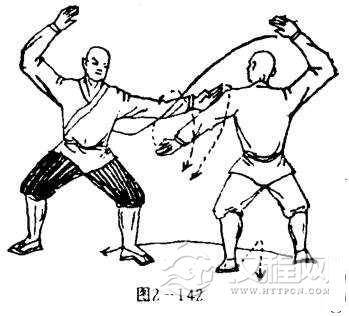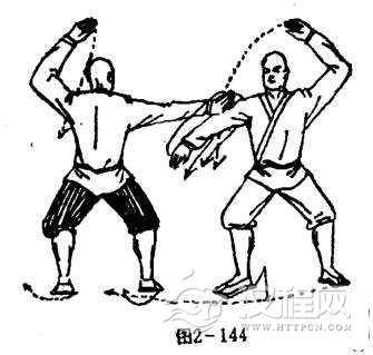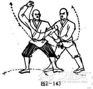 甲左手被抓,马步不亨。目视乙方(图2-143)