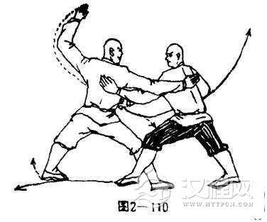 实战应用:甲方的上步拤仓.主要用于擒拿之用,乙方推肩抓档是为了防止敌人的突然袭击.是对敌人的猛力反击。