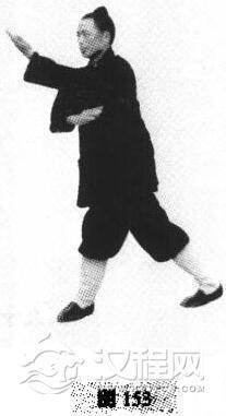 用法:这是搂膝拗步后的另两种变形拳势,前一种即为突然向前,交叉楼腿手和进脚蹬腿,另一种就是侧身进步用揽雀尾方式。