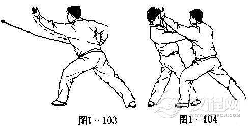 【用法】我勾弹敌腿敌必顾下,我则乘势抢进铲击其脸(图1一104)