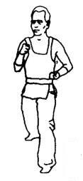 上动不停,左臂内旋顺时针绕行半周置于左肩前,与此同时右臂外旋顺时针绕行半周置干左拳下方。