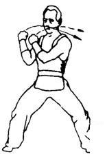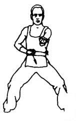 步型不变,两拳臂外旋屈肘收至右肩前。
